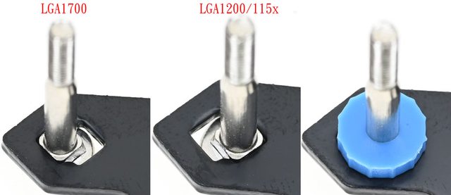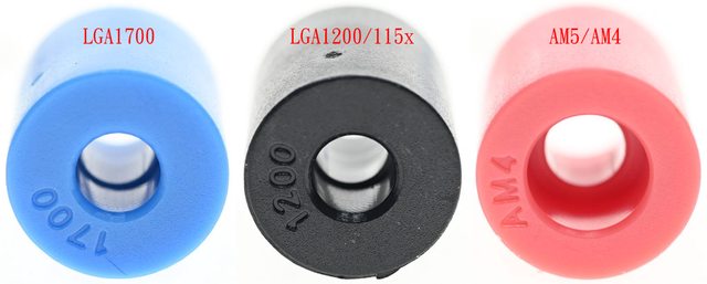 ▼LGA1700藍色套管(左)上面標示1700,LGA1200/115x黑色套管(中)上面標示1200,