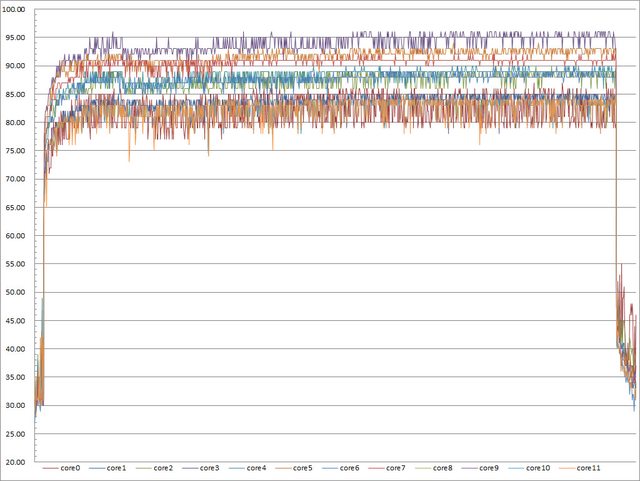 ▼高負載30分鐘CORE TEMP溫度記錄圖