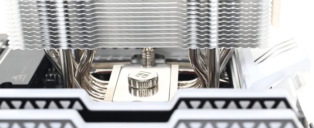 表面鍍鎳的銅製處理器接觸面和6支直徑6mm無重力熱導管之間採用焊接方式組合,搭配47
