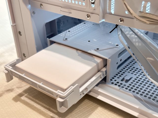 主機板背面的可拆托盤是除底部硬碟架外唯一的2.5" 裝置安裝位。