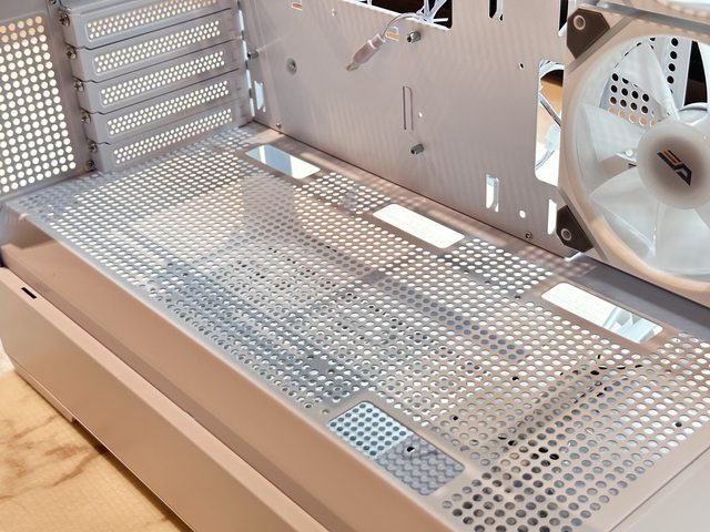 側邊能安裝2顆12cm風扇,雖然設有圓形進氣開孔,但個人更傾向這邊可直接挖空降低風