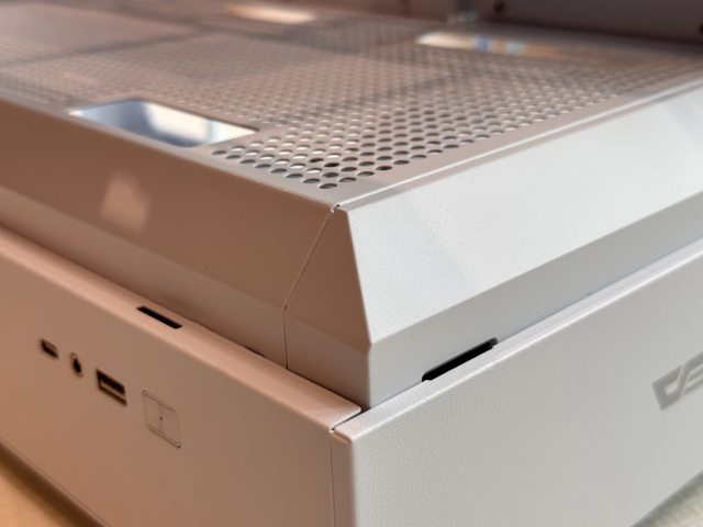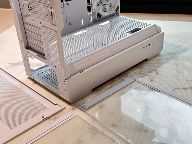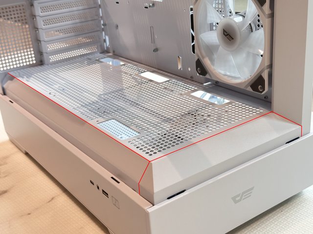 依官網宣傳文案,底部電源倉採斜上墊高設計,用意大概是為了讓機殼內部更像展示平台