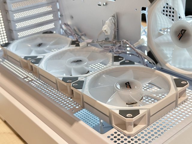 鏡之島預裝了3個12cm 4P ARGB風扇,且進風處風扇直接裝設反向風扇以達最佳燈效,以