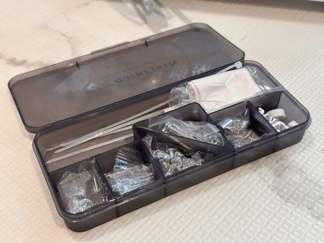 霧面塑膠材質的配件盒,質感還不錯,內部也有留設給束帶的長條收納空間。希望越來越