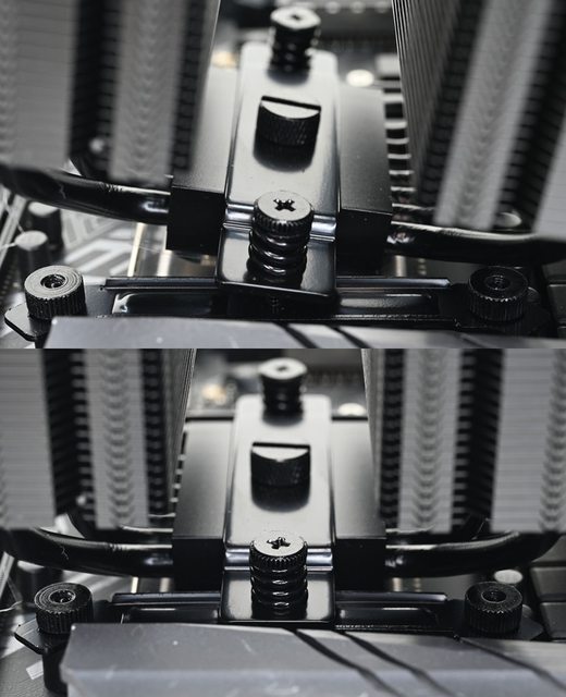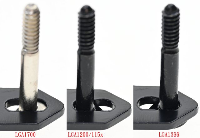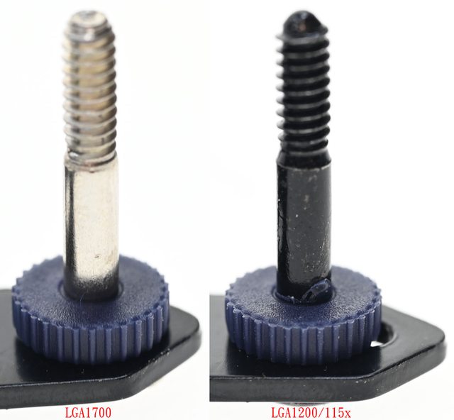 ▼黑色螺柱對應LGA1200/115x/1366(左),銀色螺柱對應LGA1700(右),螺柱底部凸起處造