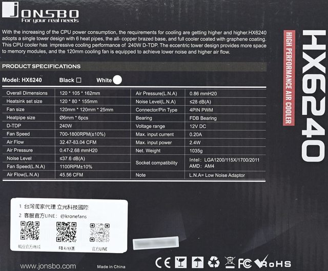標題[開箱] JONSBO喬思伯HX6240白色款散熱器