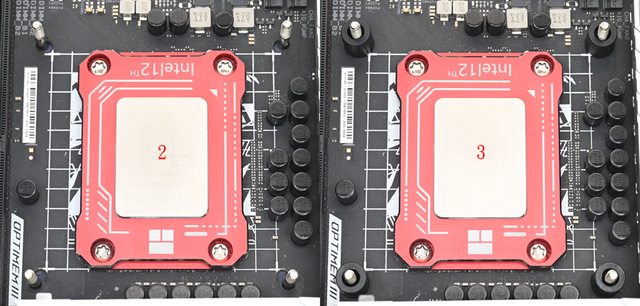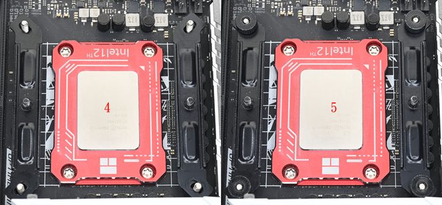 ▼黑色螺柱對應LGA1200/115x/1366(左),銀色螺柱對應LGA1700(右),螺柱底部凸起處造