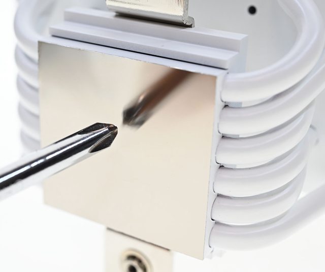▼自頂部孔洞插入包裝內含的長柄十字起子,就可以拆裝被散熱片遮住的彈簧螺帽