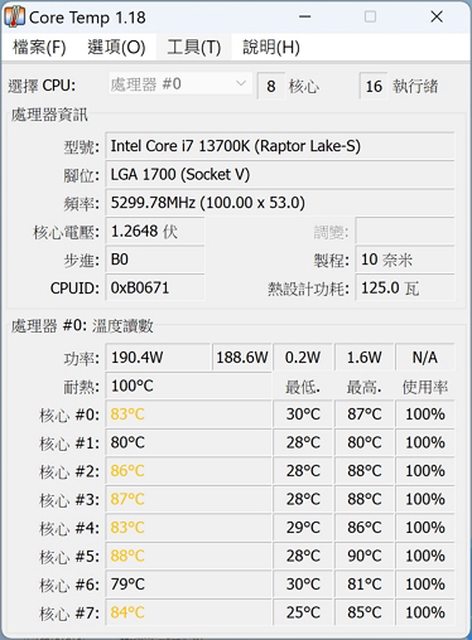 Core i7 13700K 還是蠻熱的,除了降壓