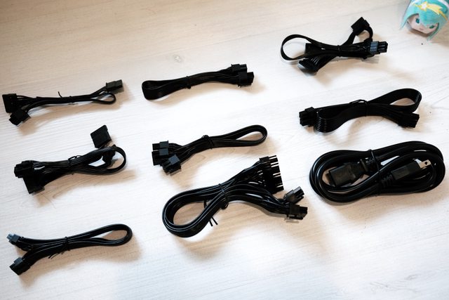 ▲ 隨附線材一覽,隨附的 PCIe 線有一條 8Pin 跟一條 8+8 Pin,[37m[m