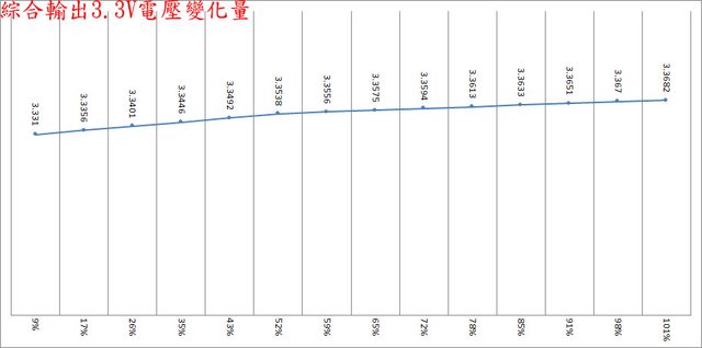 ○偏載測試,12V維持空載,測試3.3V滿載、5V滿載、3.3V/5V滿載的3.3V/5V/12V電壓變