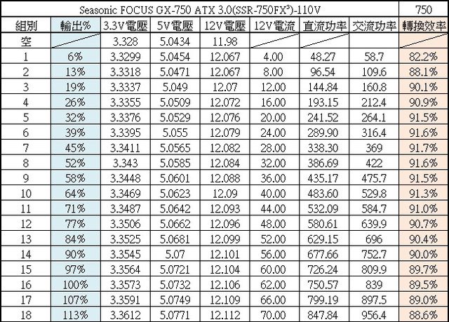 ○20%/50%/100%輸出轉換效率分別為90.07%/91.5%/89.28%,符合80PLUS金牌認證要求20%