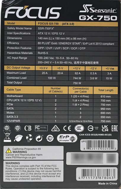 標題[開箱] Seasonic FOCUS ATX 3.0 GX-750 750W