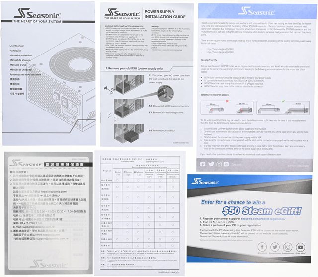 碼。外盒下側面有多國語言產品特色簡介、Seasonic商標、官方網址