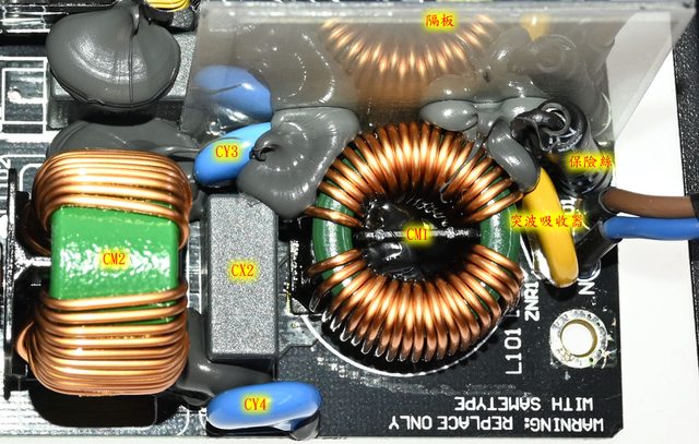 模式開關線路/主電路板保險絲有包覆套管,突波吸收器沒有包覆套管