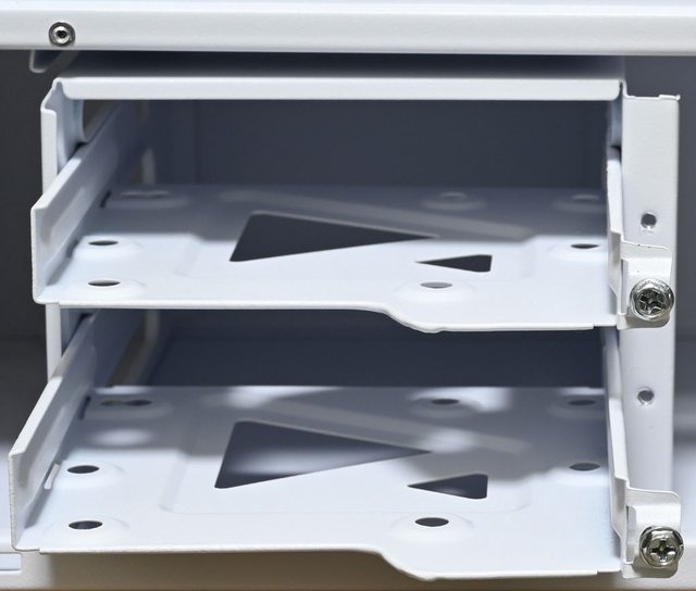 ●底部固定架具備2個抽取式托盤,可安裝2個3.5吋硬碟/2.5吋SSD