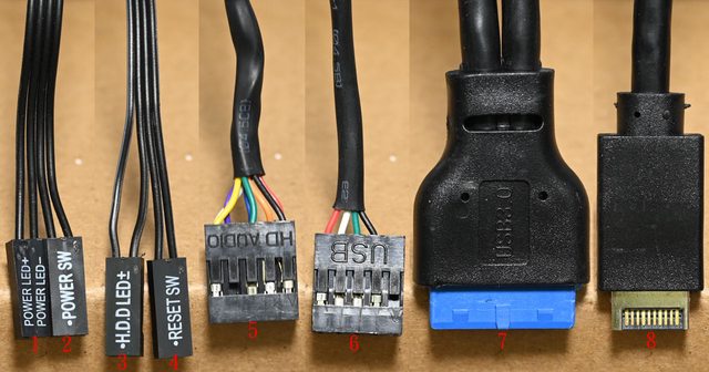 置音效插座接頭,6為USB2.0 Type-A 9pin接頭,7為USB3.2 Type-A 19pin接頭,8為
