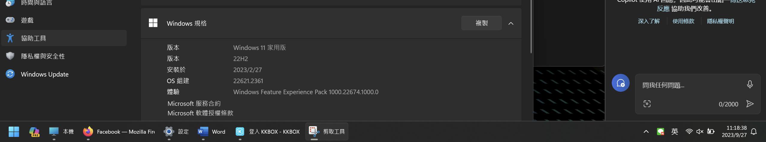 → wsa28: 再安裝 Windows設定更新(KB5030509) 可解決 36.228.166.27 09/27 20:00