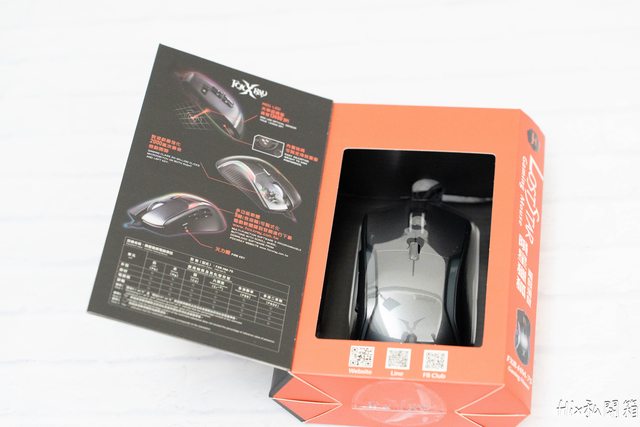 外盒正面有著開窗的設計,我記得以前我去書局買滑鼠時很喜歡看到滑鼠可以這樣打開