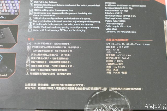 鍵盤詳細功能其實已經寫在盒子的背面了