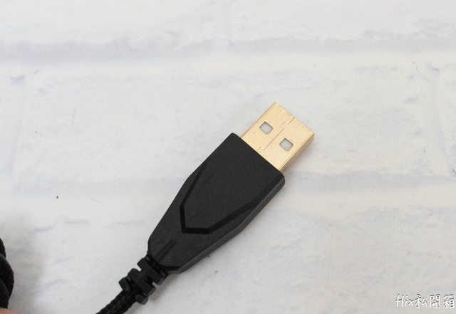 這顆滑鼠本身全體為編織線,並帶有防突波環,USB接點也有鍍金抗氧化處理