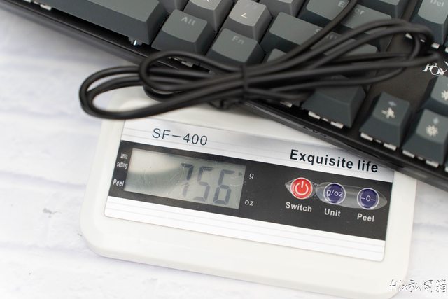 無聊用我的電競磅秤量一下,鍵盤重約750克