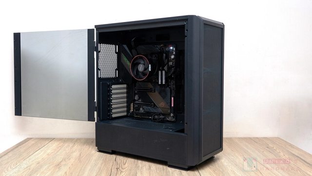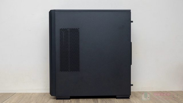 右面側板上有小範圍網孔,對應是側邊的 120 mm*2 風扇位置,讓側邊風扇能妥善發揮效果