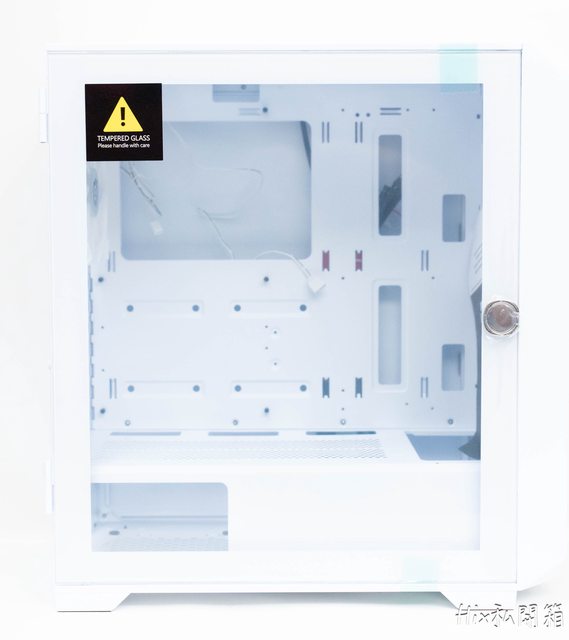 頂端有個磁吸式白色防塵網,從這邊可看到有作120系及140系風扇的安裝溝槽