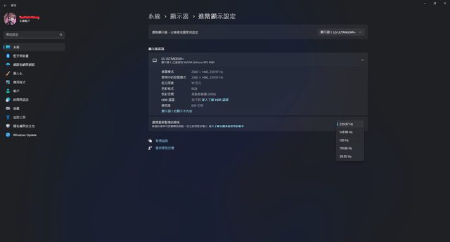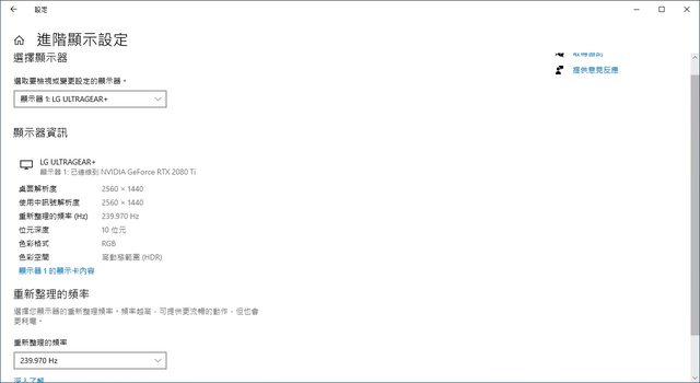 DP 1.4輸出1440p/HDR更新率一樣可達240Hz