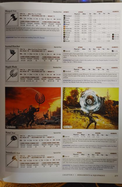 第三章, 裝備介紹, 包括穿的拿的及各類法術戰技戰灰等, 最龐大的一章