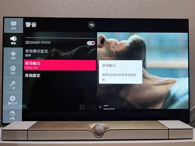先進入電視設定,調整音效輸出為「ARC」