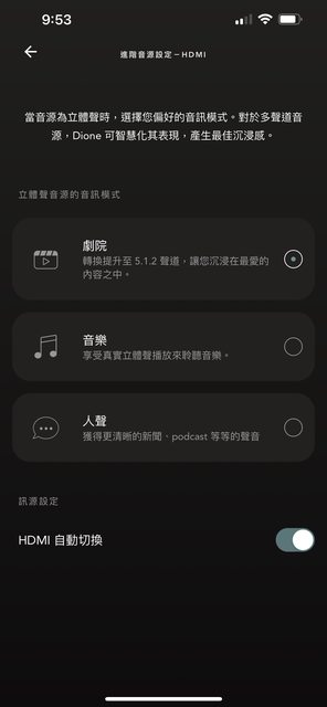 例如我在HDMI模式常駐Dolby Atmos,因此選了劇院模式
