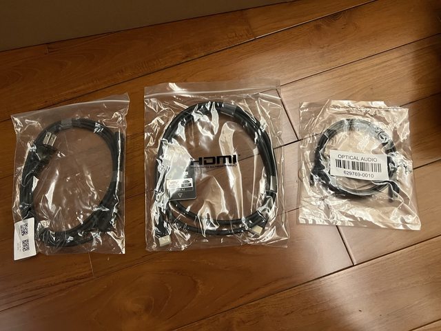 纜線由左至右為電源、HDMI及光纖