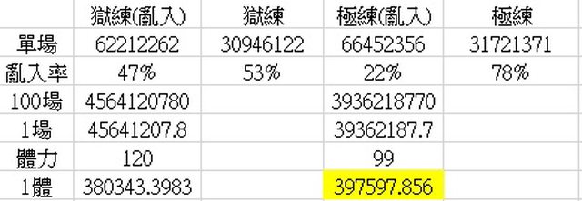不過獄練還有肥金亂入(統計沒納入計算),一場會多約500萬經驗,差距會更小甚至反超