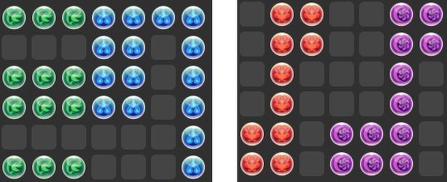 以初音來說,7x6下就會有12木+15水+15心,這樣子可以利用木貫通+水10顆以上的方式