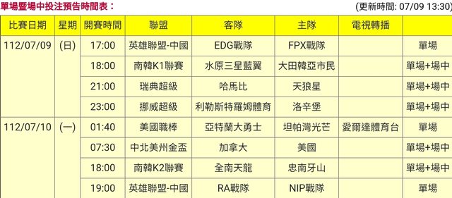 標題[情報] 112-07-09 10單場場中