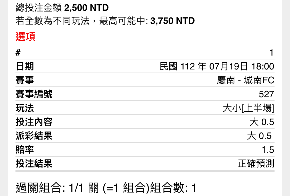 → Carlos002: 慶南上半場逆轉32倍 有勇者嗎? 118.166.99.223 07/19 18:30