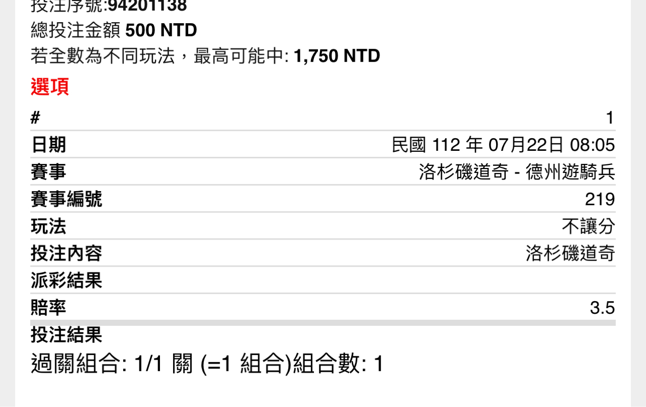 推 gk508023: 好險只買一注條子 不然賠死 182.235.193.62 07/22 11:02