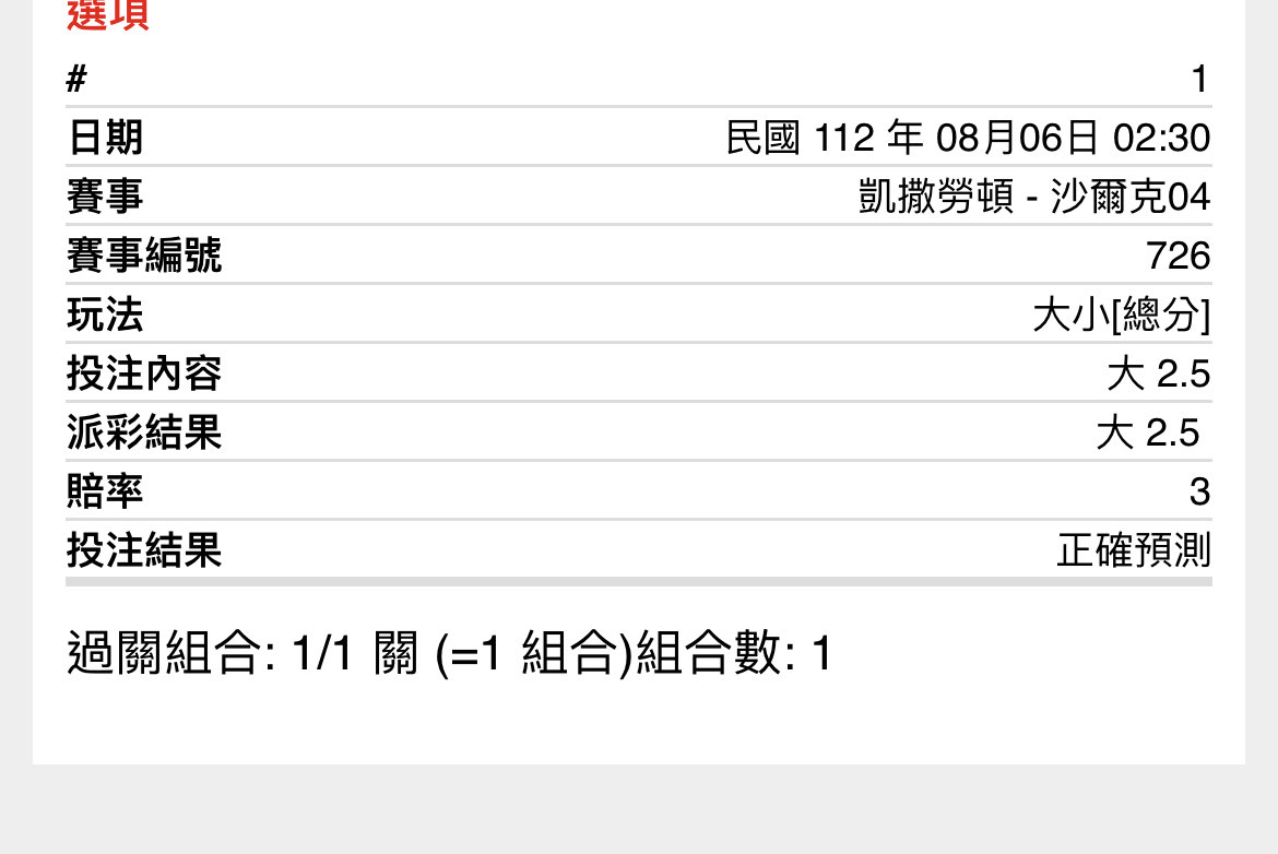 噓 Peteribb: 沒凹到對家可惜,加買尾也才3倍補回1倍 39.9.94.5 08/06 04:22