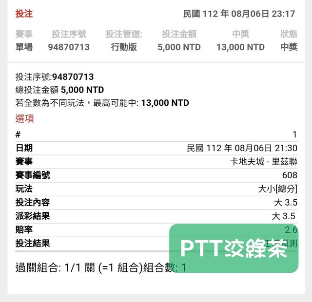 -- ※ 發信站: 批踢踢實業坊(ptt-website.tw), 來自: 101.9.238.110 (臺灣) ※ 文章網址: https://ptt-website.tw/SportLottery/M.1691336924.A.575