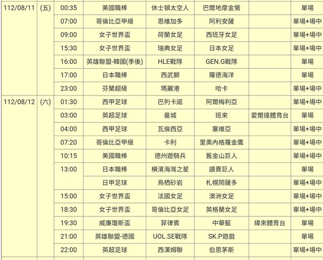 標題[情報] 112-08-11單場場中