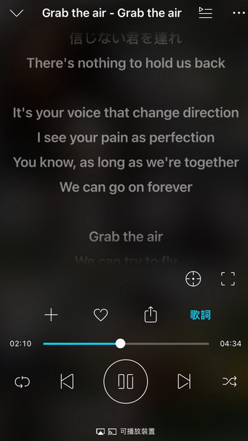 今天一樣作為一個miles分享一首milet的 grab the air裡面有一段歌詞,放在下面圖片
