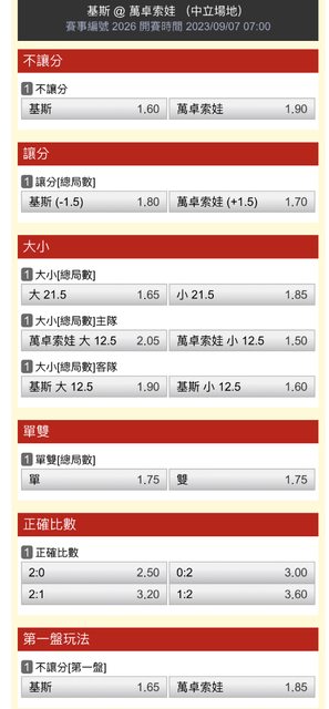Taiwan007: 我先看一下賠率223.139.82.128 09/07 07:56