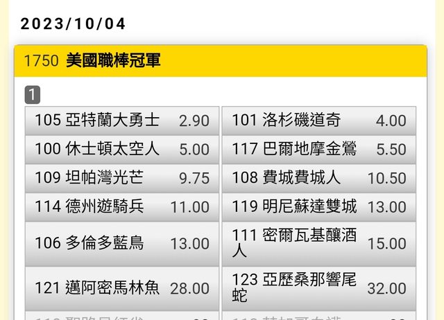 標題[閒聊] 美職棒總冠軍賠率-記錄用