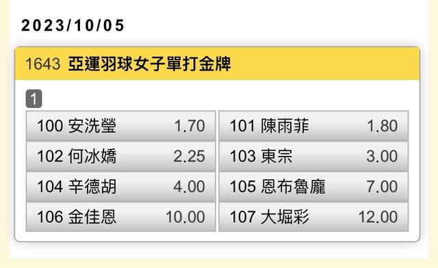 推 carmelo56: 奇怪我怎麼找不到羽球投注的選項 101.12.51.161 10/05 08:47