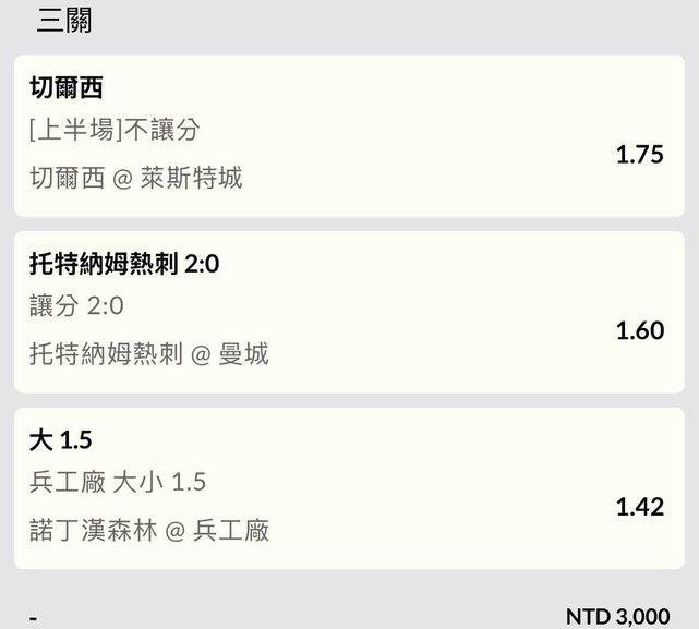 車車近況佳應該屌虐,但時間是午場又是萊斯特主場,買讓分會怕