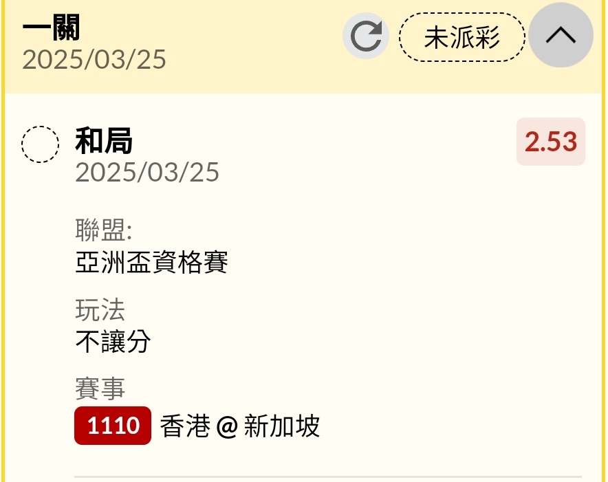 感覺會佛 香港@新加坡 ——- 0:0 H T ——- ——- 0:0 F T ——- -- ※ 發信站: 批踢踢實業坊(ptt-website.tw), 來自: 101.10.109.78 (臺灣) ※ 文章網址: https://ptt-website.tw/SportLottery/M.1742905372.A.C4C