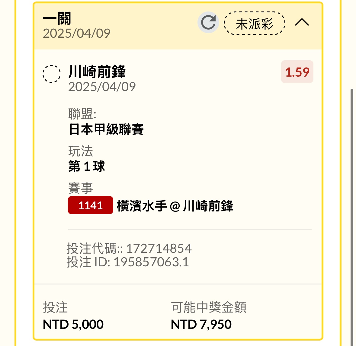 推 ty7788665: 還在等賠率就洩了 42.79.12.130 04/09 18:15