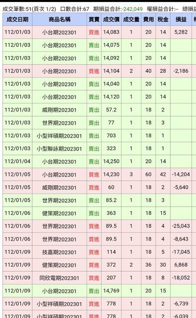 年初操作總金額459萬,以下損益包含實現與未實現。