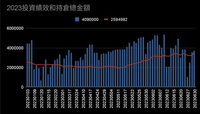 2023 半年結算總損益 金額 +917355 幅度 +19.98%